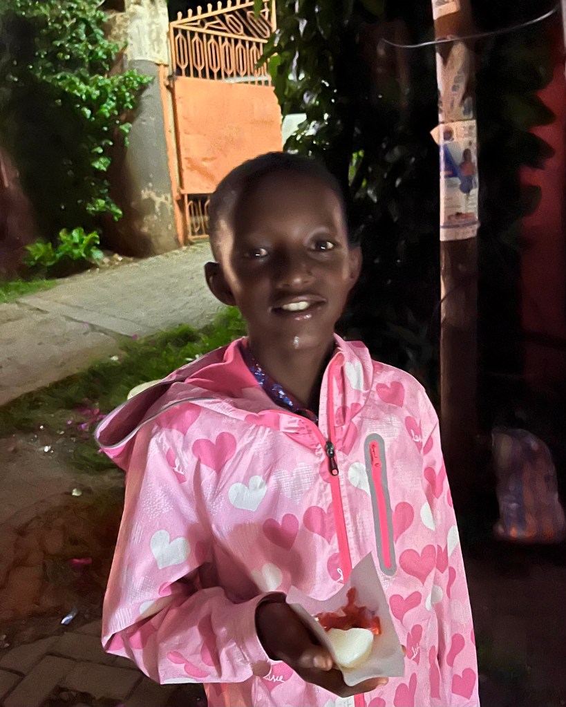 I was very happy when we cooked guacamole for dinner and invited Sarah, a friend of Alex’, for dinner. I liked the supper and the sparkling juice that we were struggling to open. I was also very happy that I helped Alexander that people were selling things to him with Mzungu price.