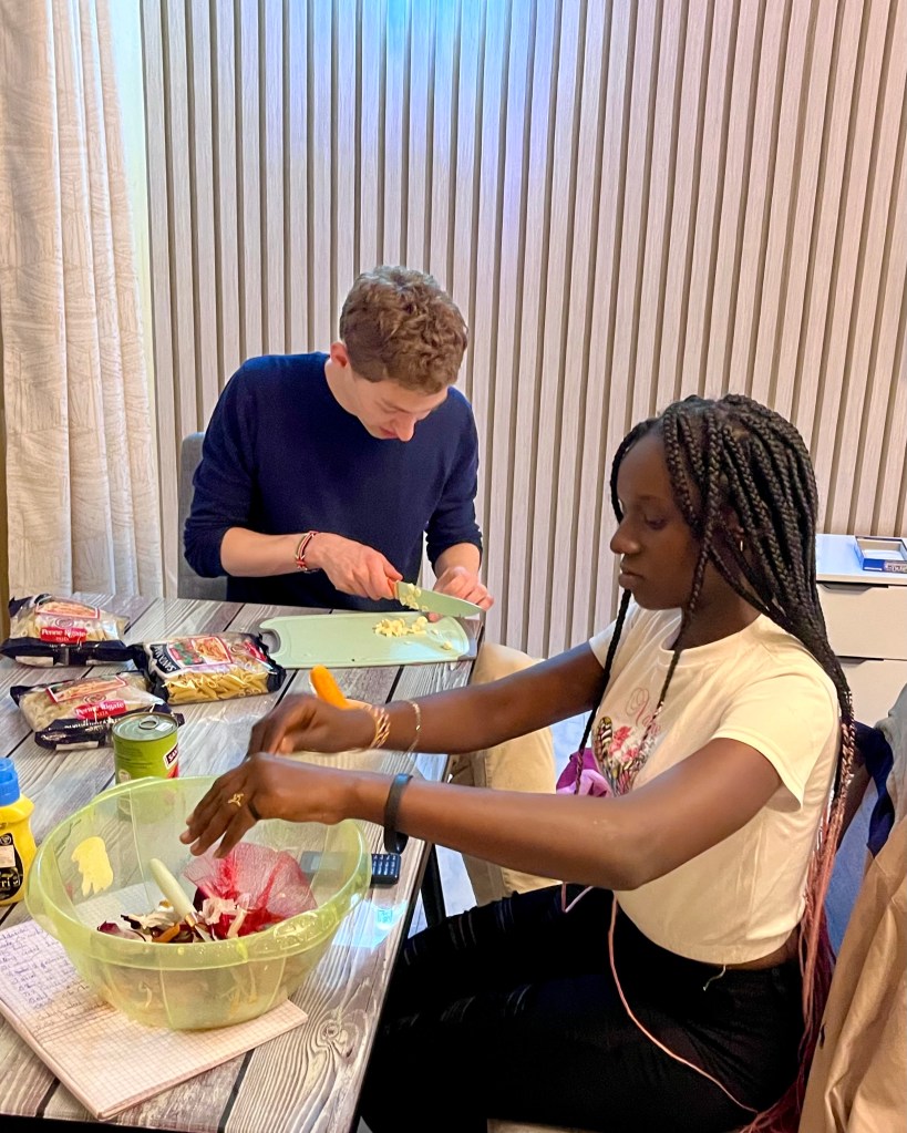 Throughout the weekend, there were three main highlights. On Friday morning, we went for a tour at the United Nations Environment Program, where the students learnt about international opportunities within their country. Following a nyama-choma lunch, we visited the University of Nairobi , where the students got a hands-on inspiration for their academic future by entering the lecture halls and getting into conversations with current students. Finally, we climbed the Kenyatta International Convention Center to get an overview of this giant city. In the evenings we cooked together (pasta bolognaise & guacamole with patatas bravas), always failry splitting the tasks among each other.